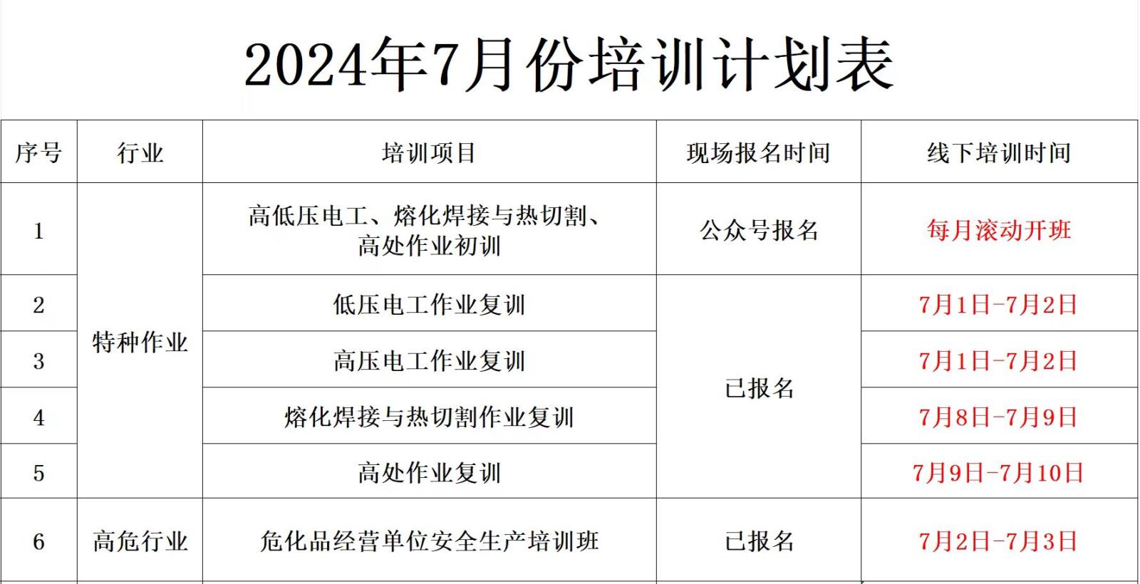 七月培训计划